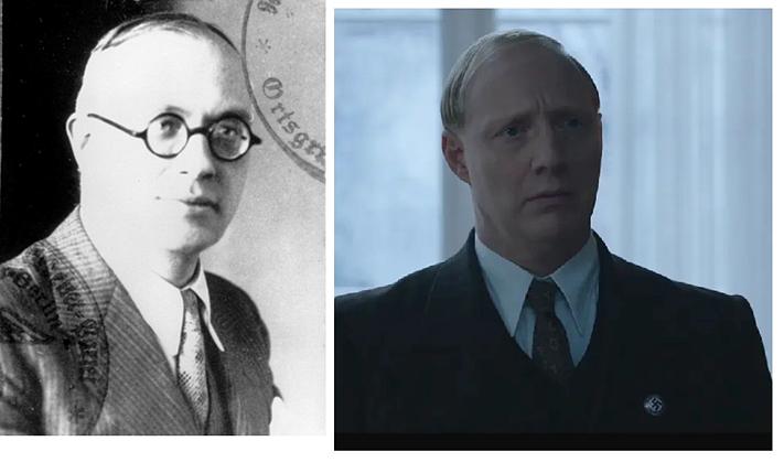 威廉·施图卡特 (Wilhelm Stuckart, 1902–1953) -- 左为真人,右为电影剧照