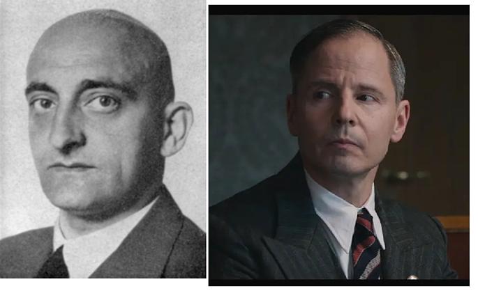 约瑟夫·布勒 (Josef Bühler, 1904–1948) -- 左为真人,右为电影剧照