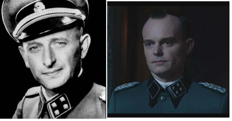 阿道夫·艾希曼 (Adolf Eichmann, 1906–1962) -- 左为真人,右为电影剧照