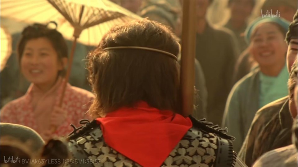 踩着七彩祥云,披着满天红绸,出现的是紫霞的意中人,是戴上金箍的孙悟空,而不是只属于她的至尊宝。两个人物的割裂,仿佛是命运无情的嘲弄。最终紫霞为保护孙悟空而死,孙悟空打败牛魔王,用月光宝盒穿越回五百年前,因至尊宝更改前因回归正常西游主线。众人皆得所愿,师徒四人齐心向西天求证大道;二当家考取功名衣锦还乡,娶得白晶晶和春十三娘,而至尊宝与紫霞在城门上对峙,孙悟空以一阵烟雾夺取身体留下一个吻,两人终成眷侣。事了拂衣去,转身的落寞背影,在“他好像一条狗哦”的嘲弄中离去。实则也是对命运无奈的自嘲。