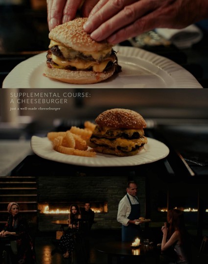 12.最后一道菜:“光盘行动”棉花糖脆饼——棉花糖、巧克力、消化饼、顾客、员工、餐厅。 (“史上对人类味觉的最大攻击,来源不道德的巧克力与胶化糖水,囚禁在工业级消化饼干之间,它代表我们的过错,我们却将它与纯真连结,童年,父母,但使这怪物改变的是火”)