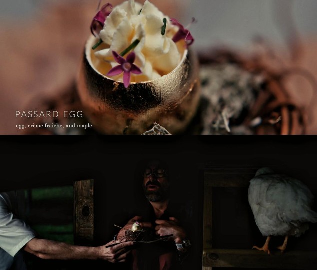 3.第一道菜:“岛屿”——盘中有岛上周围的植物,上面覆盖几近结冻的过滤海水,海水融化后将为食材调味。 (体会大自然与生态,永恒,接纳,放下。喜欢主厨说的那句“这房间里发生的事,相较于发生在大自然土壤、水中与空气里的事,毫无意义可言,我们不过是惊慌的一瞬间,大自然才是永恒。”)